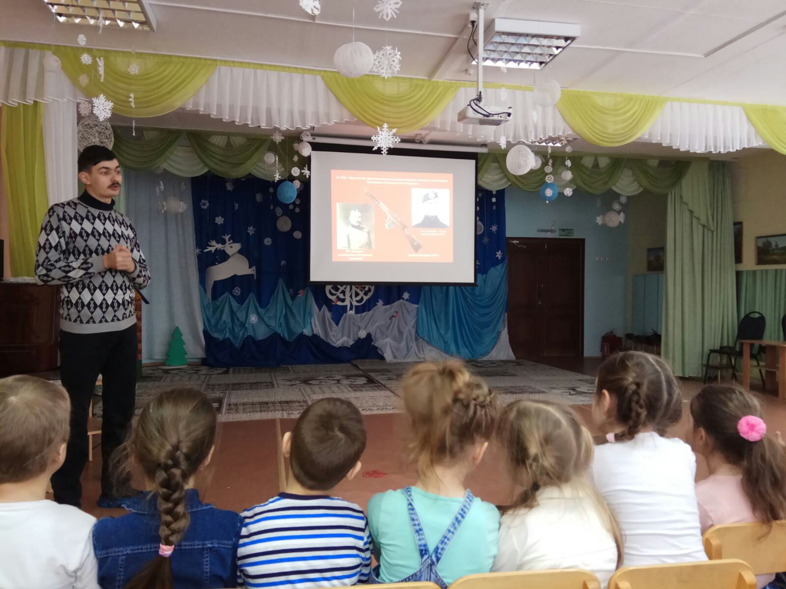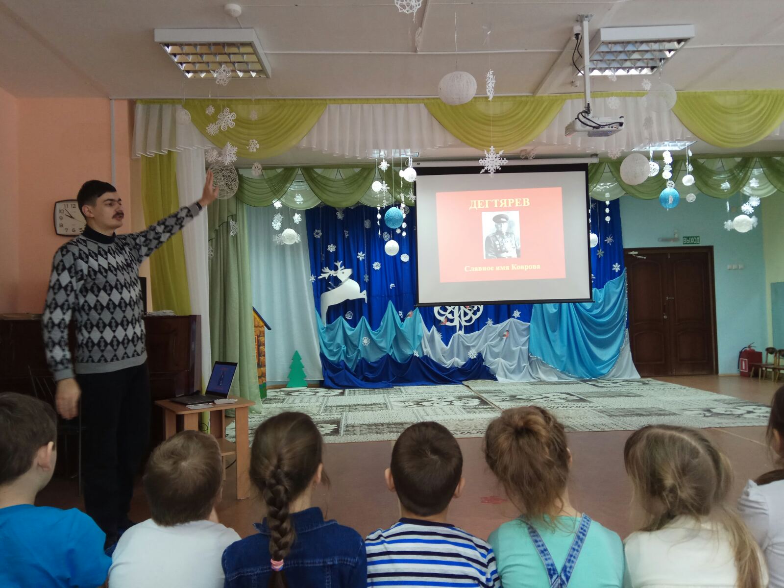 13 февраля 2020 года для подготовительных к школе групп № 8, № 12, № 13, № 17 прошло познавательное занятие "Дегтярев - Славное имя Коврова".