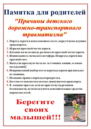 За 5 месяцев 2021 года в отношении детей, не достигших возраста привлечения к административной ответственности, составлено более 120 карточек нарушения ПДД детьми. Основные нарушения ПДД несовершеннолетними: переход проезжей части в неустановленном месте, пересечение проезжей части по пешеходному переходу на запрещающий сигнал светофора, пересечение проезжей части на велосипеде не спешившись, выезд на проезжую часть на велосипеде лицами младше 14 лет. На основании вышеизложенного и в целях предупреждения и профилактики детского дорожно-транспортного травматизма родителям необходимо проводить беседы, направленные на разъяснение детям правил безопасного перехода проезжей части, правил для велосипедистов и пассажиров, рекомендовано в период летних каникул усилить контроль за времяпрепровождением несовершеннолетних, исключить свободный доступ к транспортным средствам, регулярно напоминать несовершеннолетним о правилах безопасного перехода проезжей части.