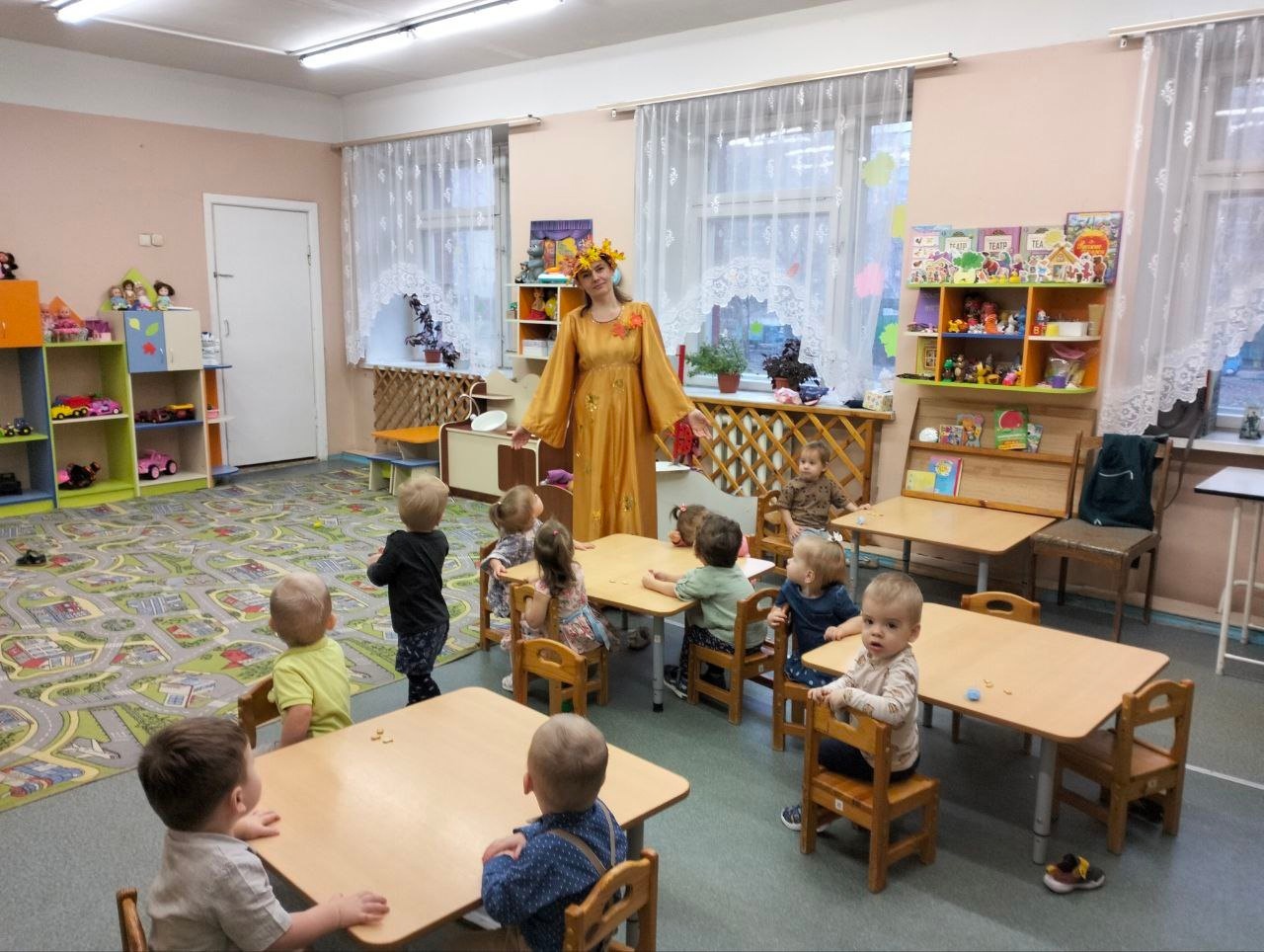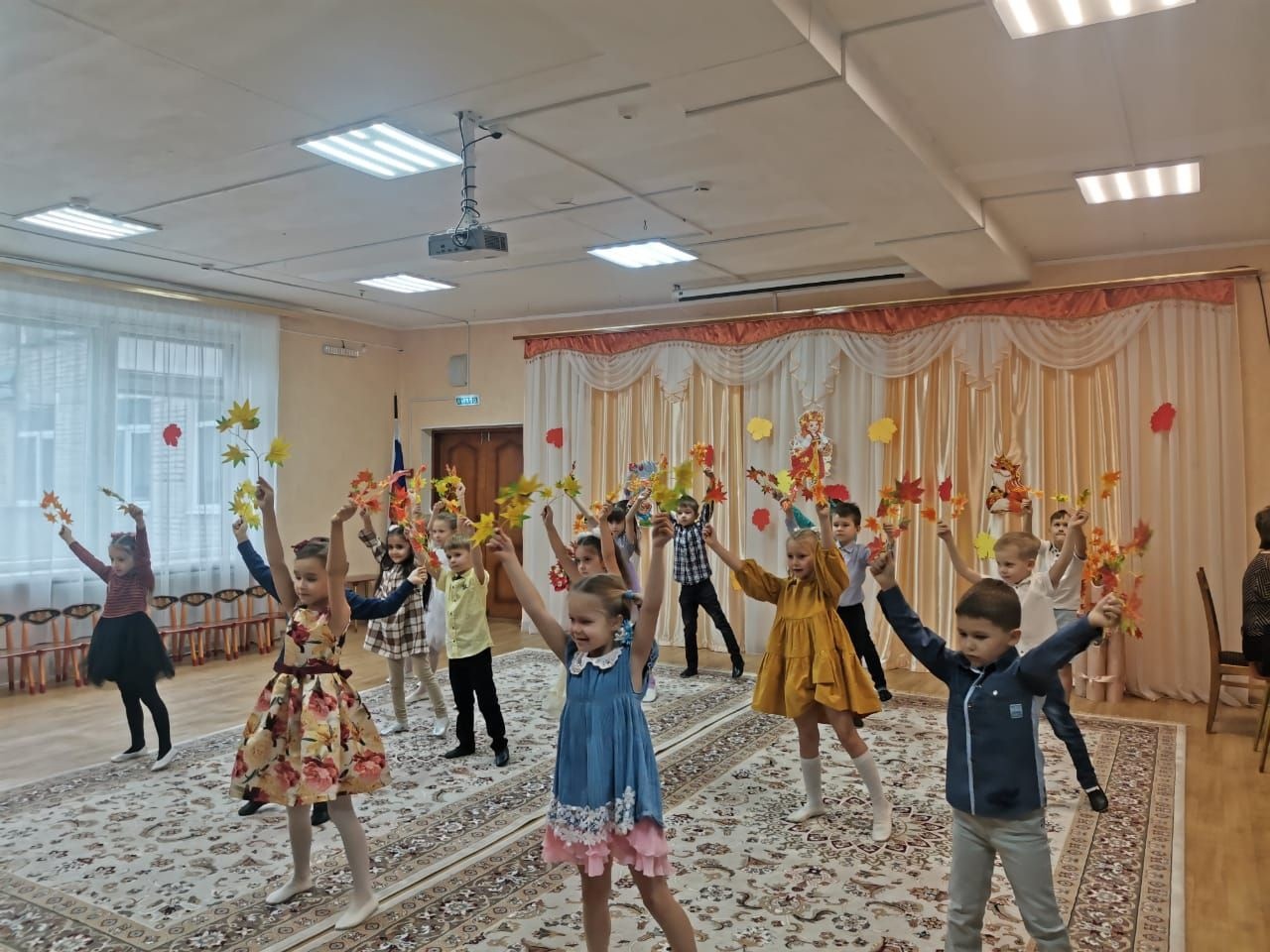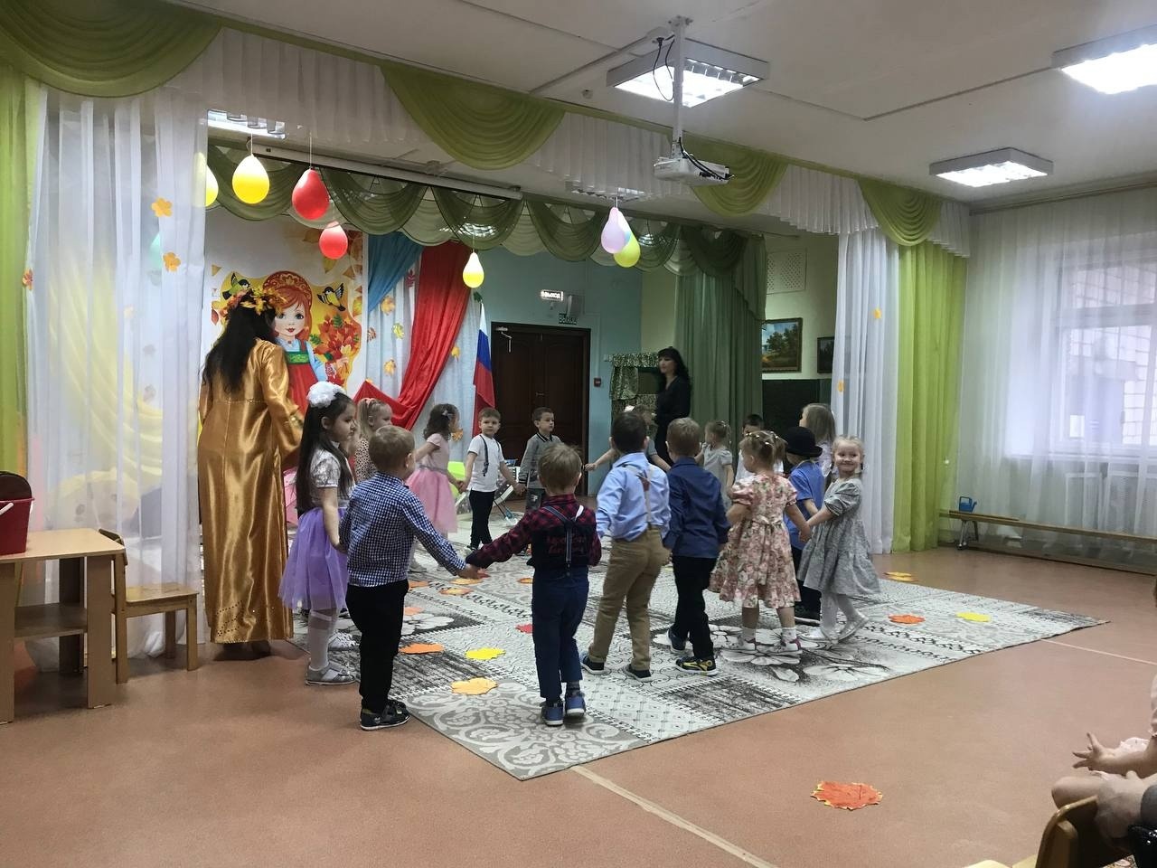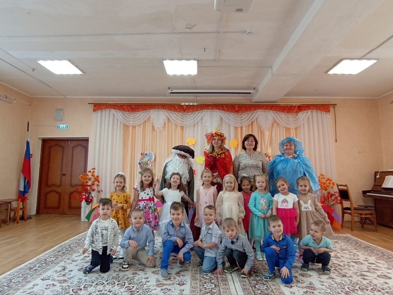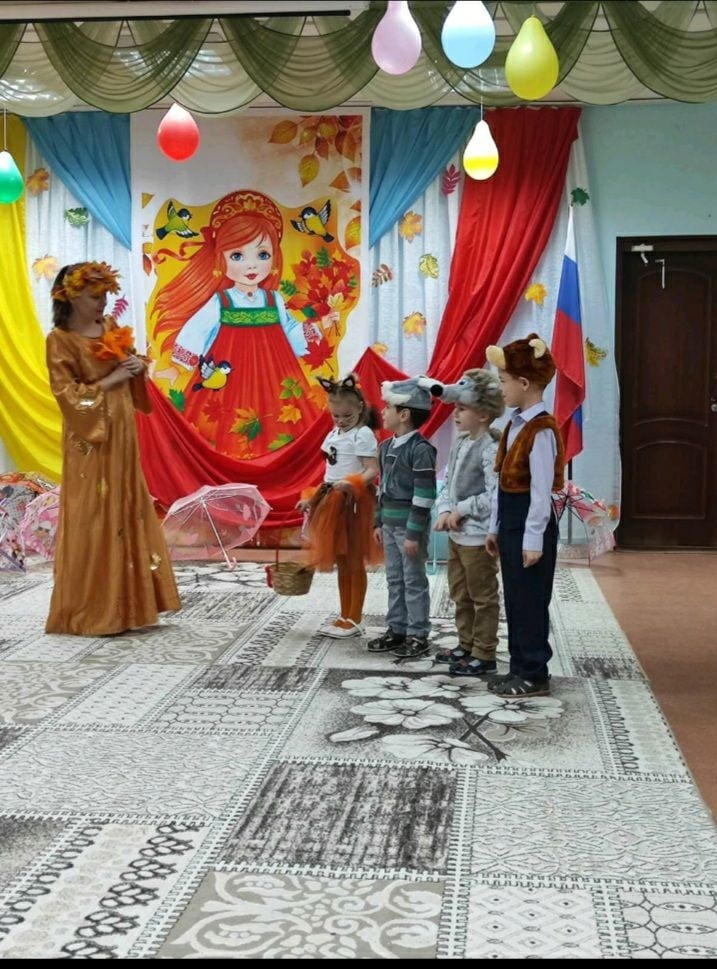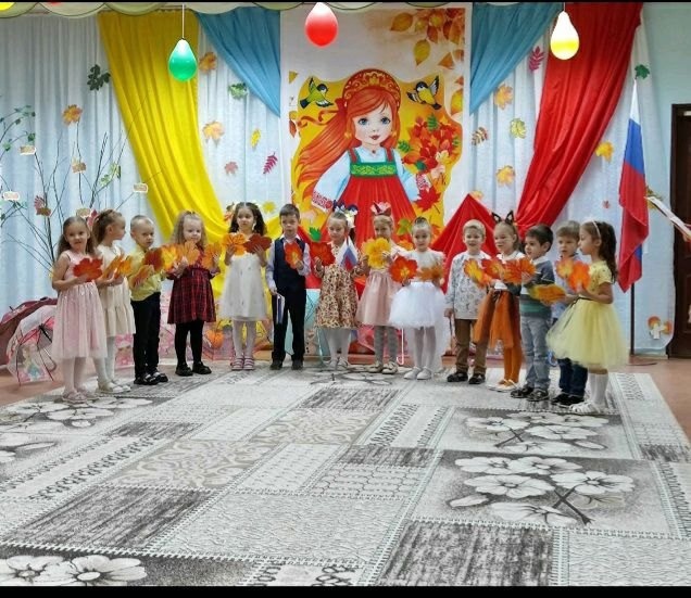 Каждую осень в нашем детском саду проходят традиционные осенние праздники. Этот год тоже не стал исключением. Празднику предшествовала большая предварительная работа воспитателя и музыкальных руководителей с детьми: рассматривая иллюстрации - составляли небольшие рассказы об осени, пробовали придумывать небольшие сказочные истории, читали детям много рассказов и стихов об осени, дети рисовали и делали аппликации на осеннюю тему. Каждый день ребята познавали красоту окружающего их мира и разучивали стихи, песни и маленькие сценки. И вот наступил момент, когда к нам в детский сад пришла сама госпожа Осень....