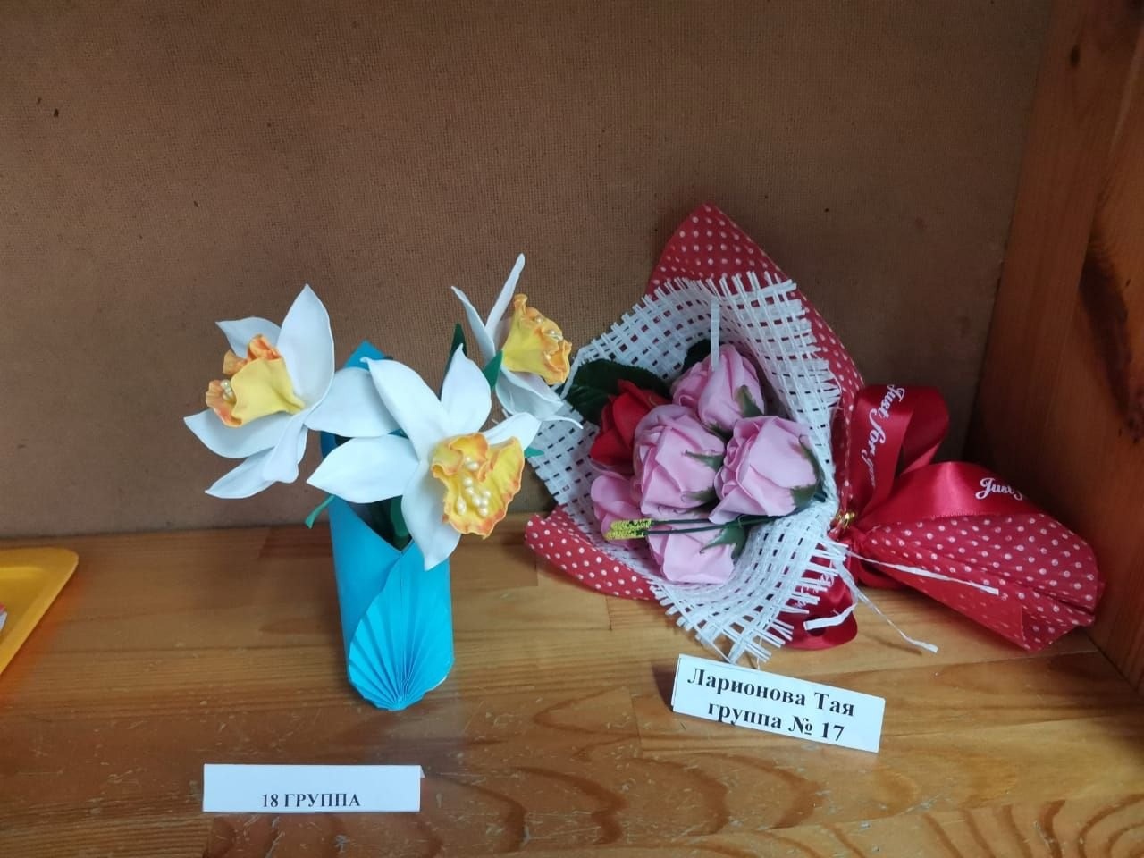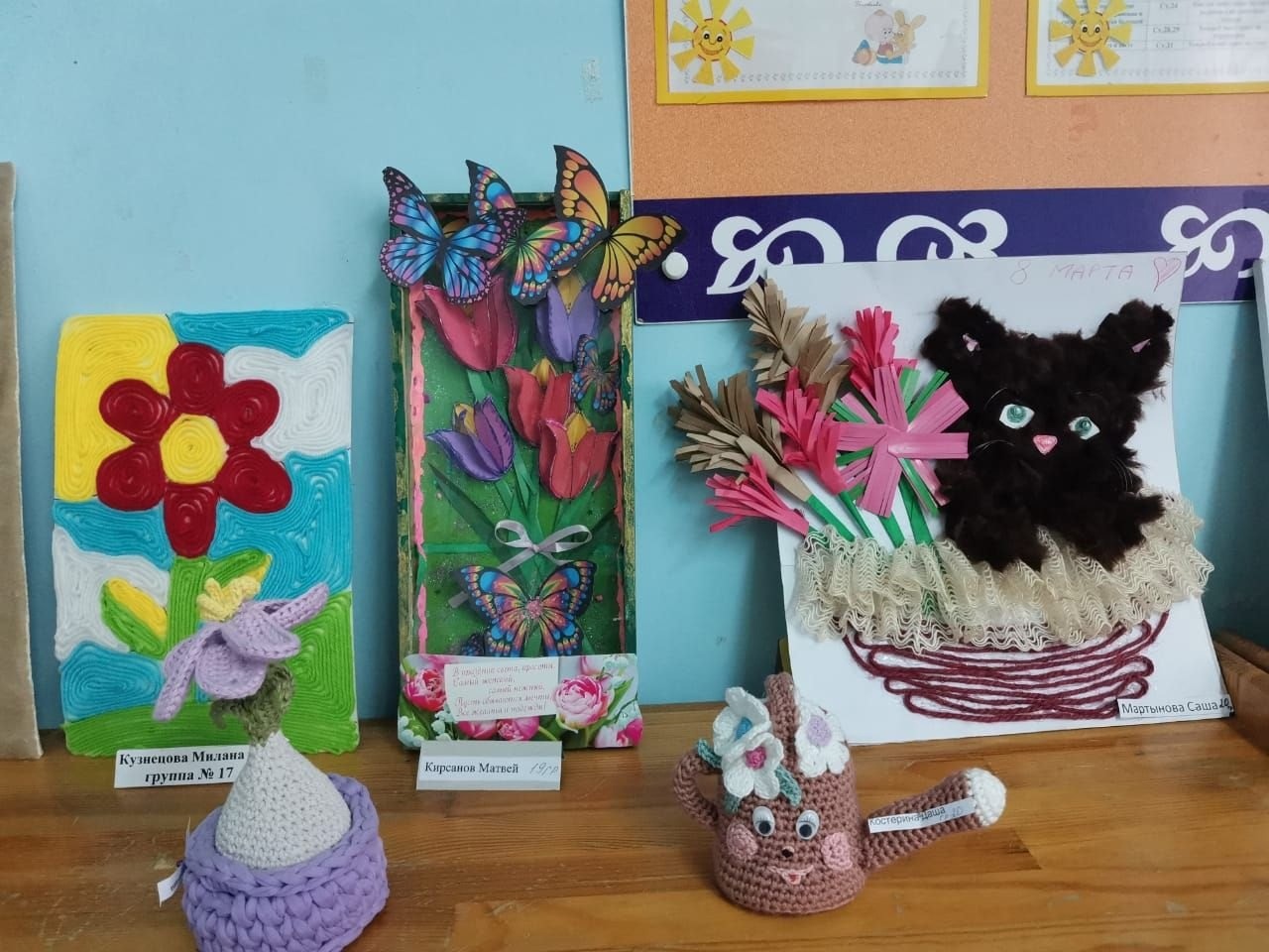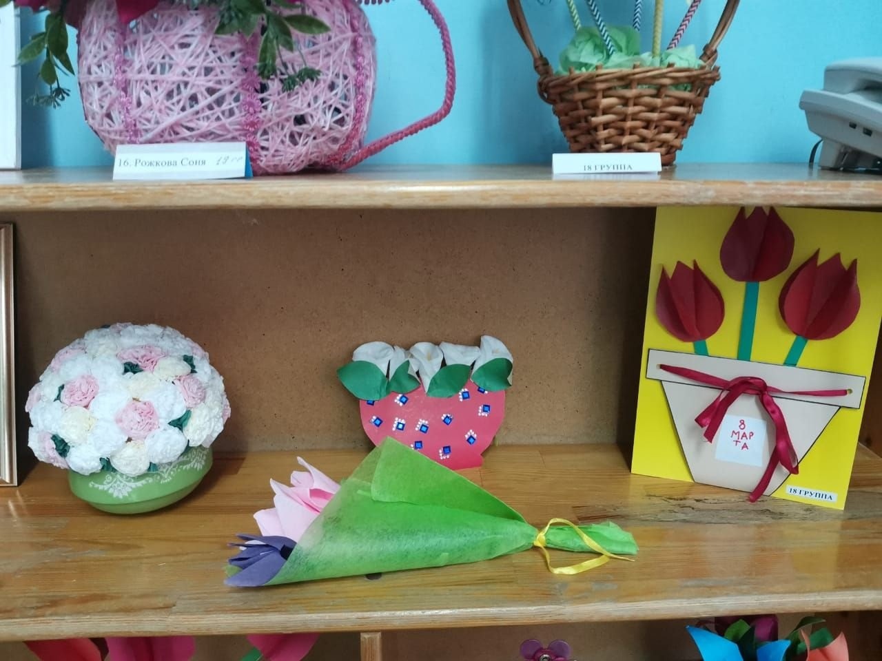 Поделки получились очень интересные, отражали тему праздника и создали весеннее настроение. Оказывается не так много надо, чтобы создать праздничное настроение. Материал, фантазия и немного творчества. Вот какие молодцы наши мамы, что находят время вместе с детьми заняться творчеством. А самое главное этому учатся и их дети. Большое спасибо родителям и нашим дошколятам за их труд!