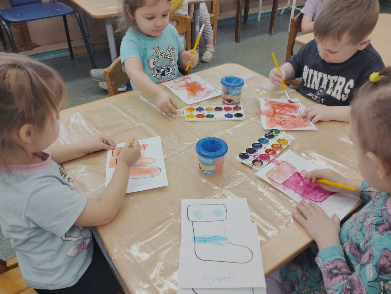 Основным занятием на мероприятии стало рисование валенков красками. Дети с большим энтузиазмом взялись за кисти и палитры, чтобы создать свои уникальные шедевры. В процессе работы они не только развивали свои творческие способности, но и узнавали много нового о символике валенка в русской культуре.