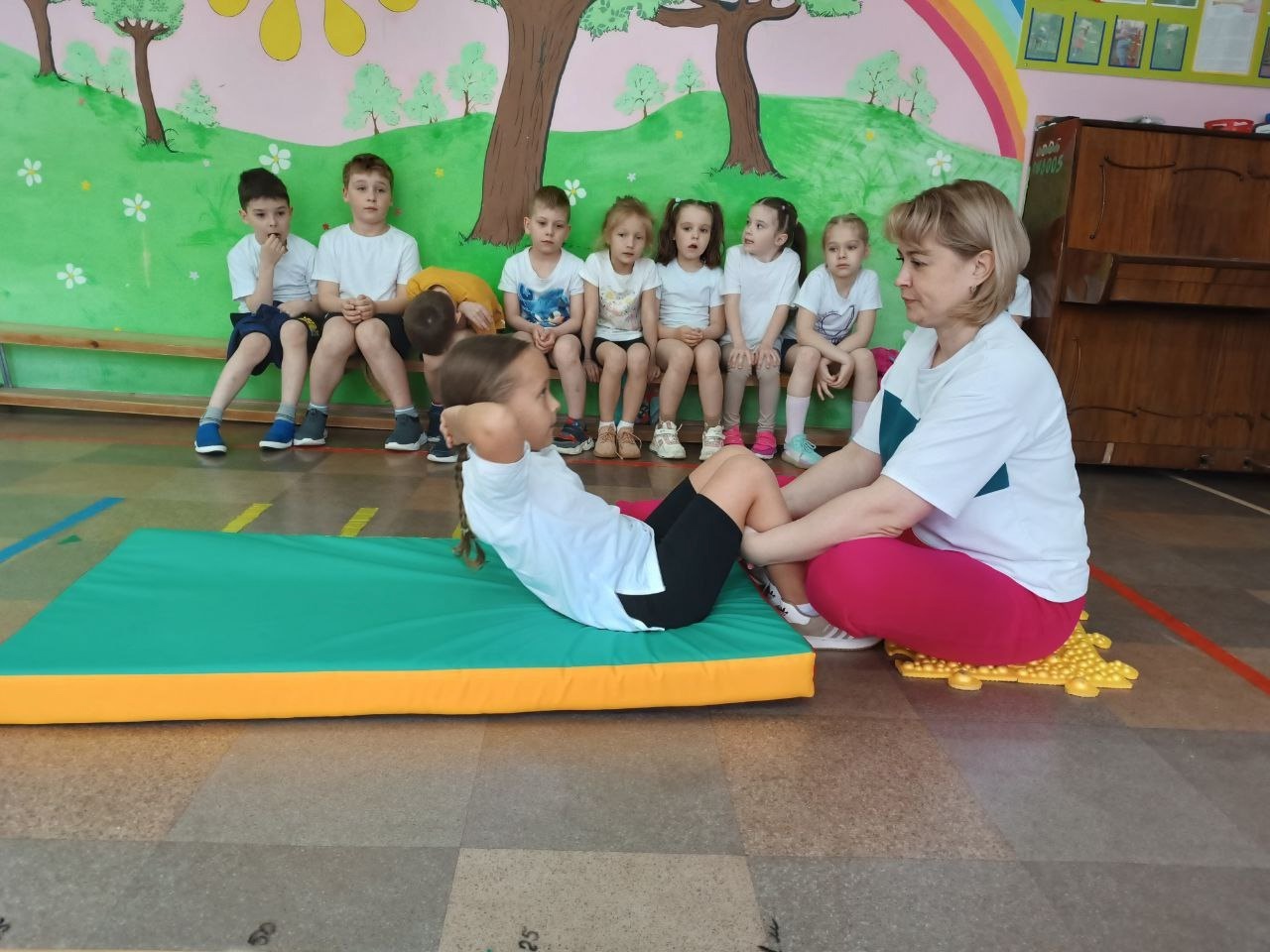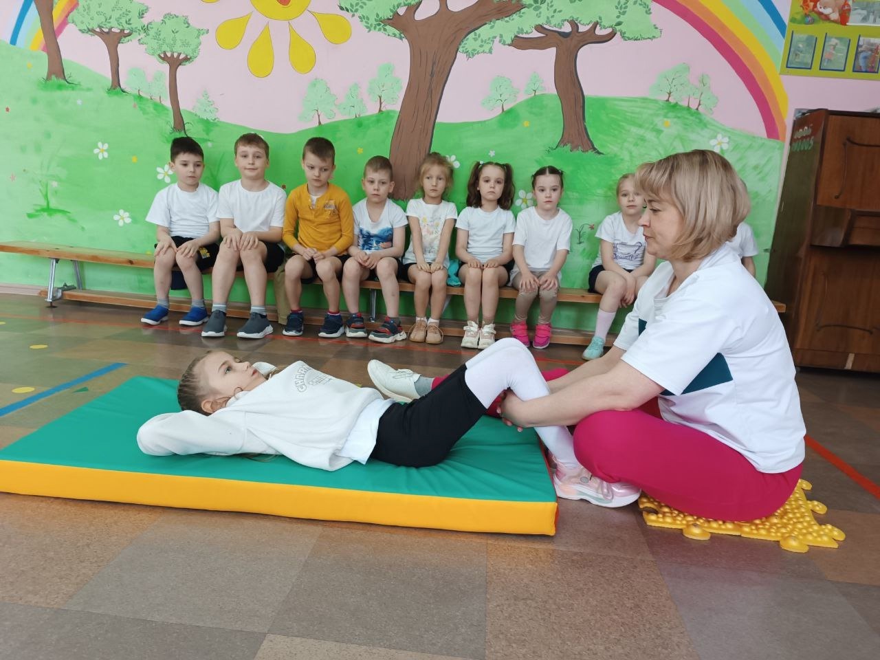 В нашем детском саду № 23 первый этап сдачи нормативов прошёл сегодня 12 мая, наши воспитанники показали очень высокие результаты в наклоне вперед из положения стоя на гимнастической скамье, прыжках в длину с места толчком двумя ногами, метании набивного мяча в 1 кг и поднимании туловища из положения лежа на спине.