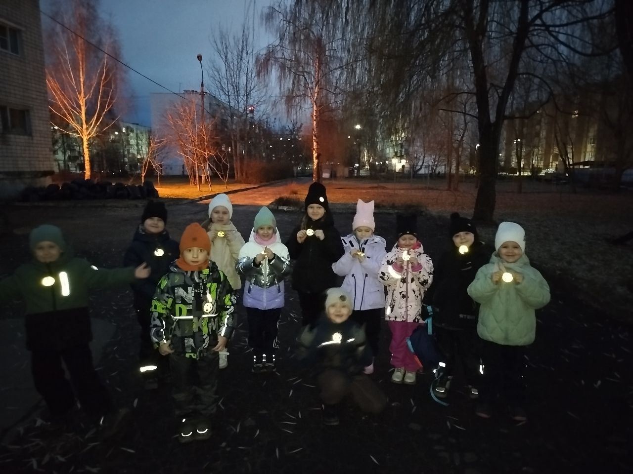 В целях предупреждения и профилактики детского дорожно-транспортного травматизма в нашем детском саду в период с 24 по 27 ноября 2025 года проводилась увлекательная, познавательная и важная акция «Засветись в темноте!». Её цель — повысить безопасность детей на дорогах, особенно в тёмное время суток. Мы напоминаем о важности использования световозвращающих элементов. Светоотражатели, или флинкеры, — это специальные материалы, которые отражают свет обратно к его источнику. Они помогают сделать ребёнка заметным на дороге в темноте. Это особенно важно осенью, когда рано темнеет и погода часто плохая.