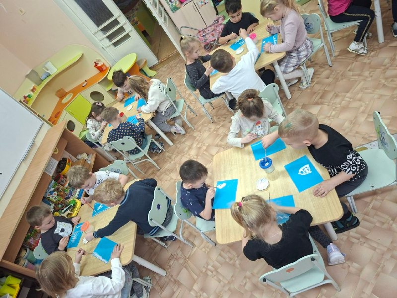 Мазки белой краски превращались в пушистый снег, который укрывал землю и деревья мягким покрывалом. Дети с увлечением наблюдали за тем, как на голубом листе оживает зимняя сказка. В их глазах отражалось волшебство момента, радость творчества и предвкушение новогодних чудес.