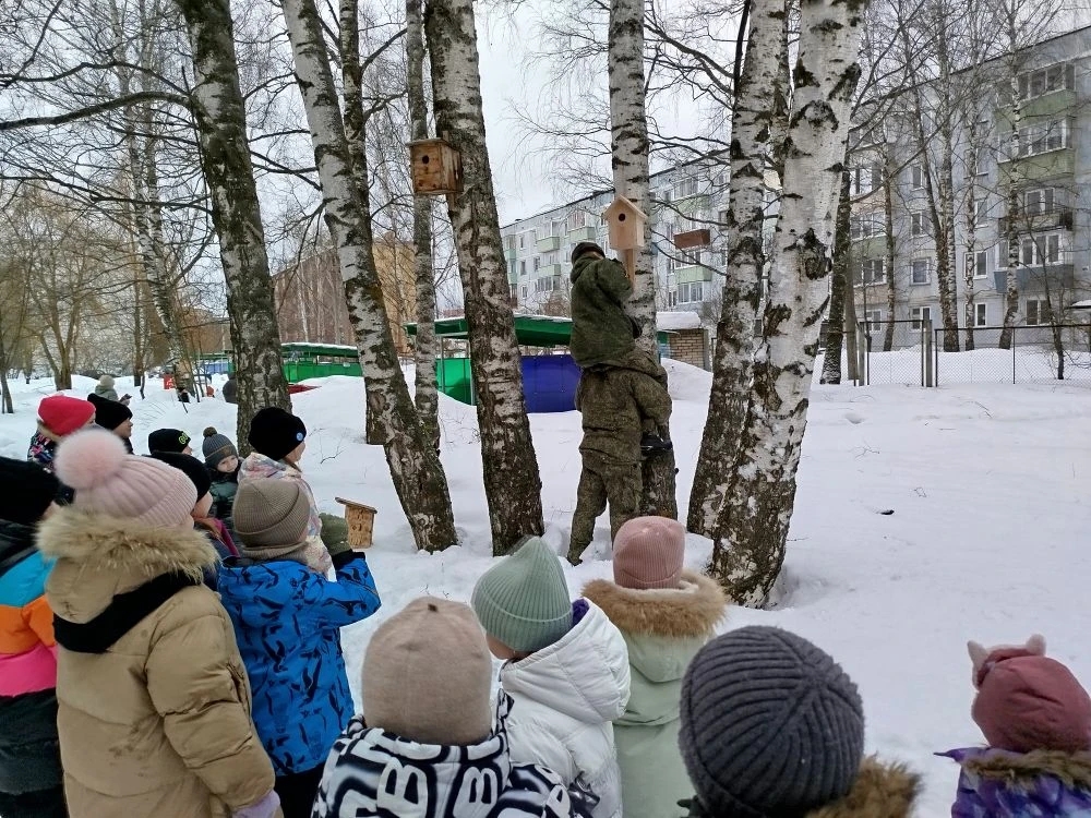 В нашем детском саду, в рамках тесного сотрудничества с воинской частью, состоялась замечательная экологическая акция под символичным названием "Скворечник — дом для птиц". Военнослужащие, проявив настоящую заботу и мастерство, самостоятельно изготовили уютные скворечники, с особой тщательностью и вниманием к деталям, вместе с воспитанниками детского сада обоих корпусов крепили новые жилища для птиц.