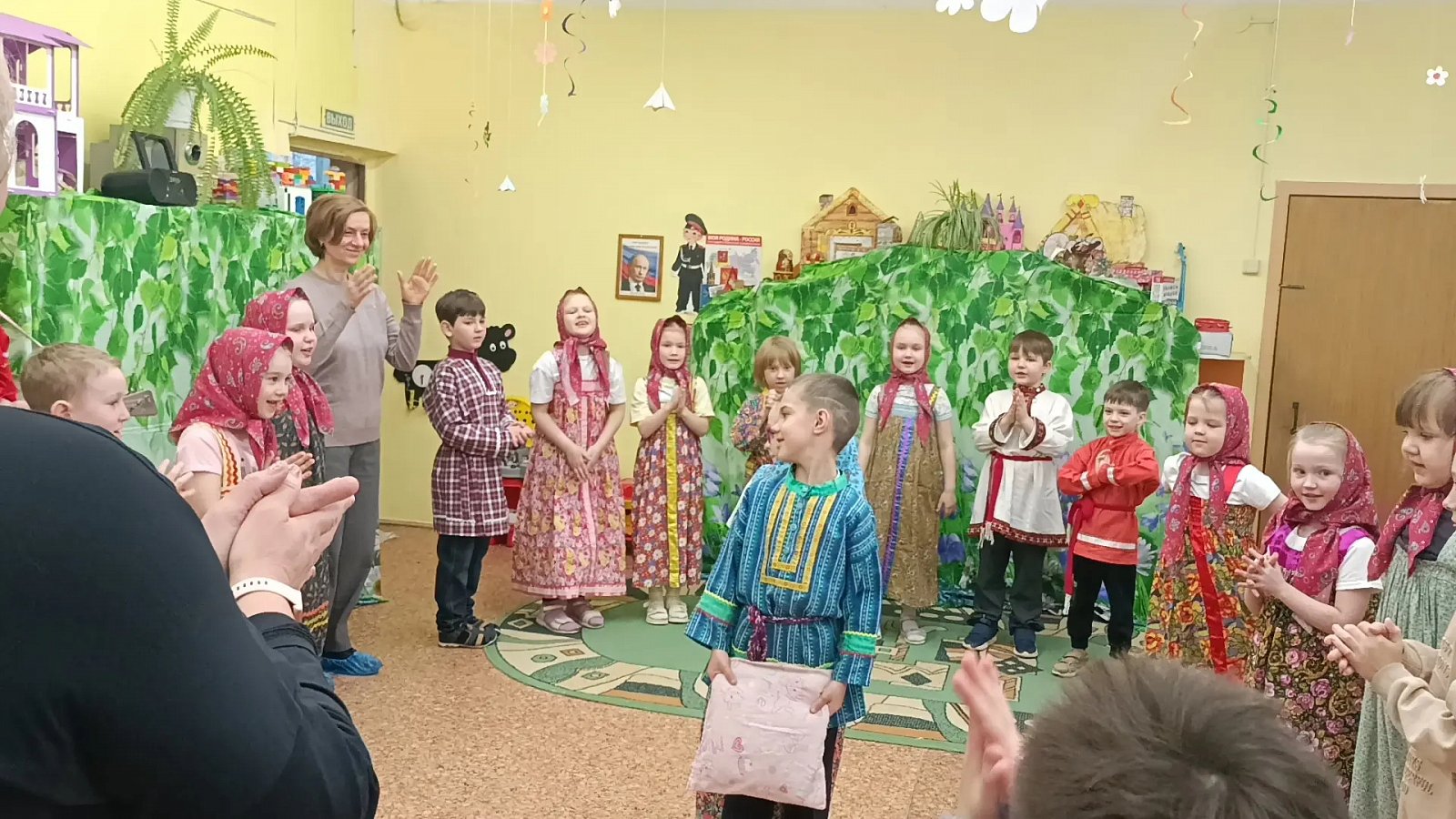 В МБДОУ № 23 в подготовительной к шлоке группе № 5 состоялось итоговое открытое занятие с фольклорной студией "Крупеничка" из ДК Родина. Лариса Ивановна и Людмила Валерьевна продемонстрировали родителям, чем занимались с детьми этот учебный год. Большой упор был направлен на правильное произношение звуков, на эмоциональную окраску проговариваемого текста, умение работать в команде. Проводились народные игры, заклички, шуточные прибаутки, скороговорки "Зайчик, ты зайчик", Мышка сушек насушила", "Ой, кулички, жаворонушки", "Жил я у барина", "Едем мы на ярмарку", "Я кот-котофей", "Где же ты был мой черный баран", Как у тётушки Матрёны", Мак-маковок", "Дед Ермак"и др., в заключении поиграли вместе с родителями в любимую игру "Подушечка-раздушечка"
